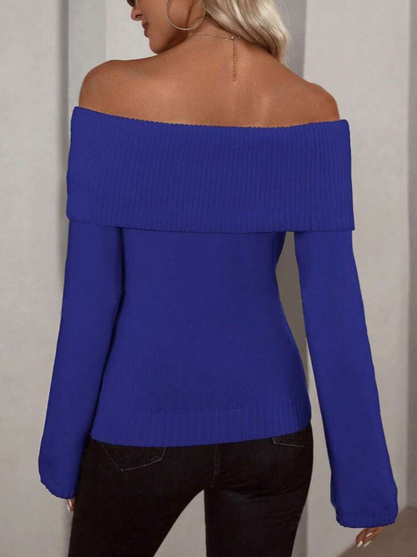 European And American One-neck Slim Fit Fashion Knitted Long Sleeve Women's Sweater